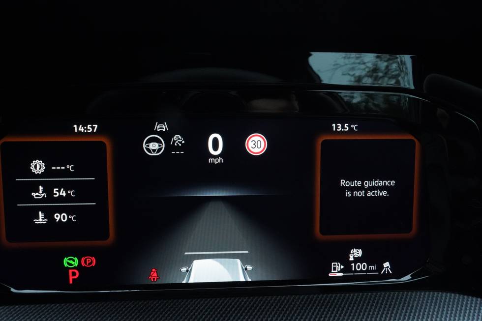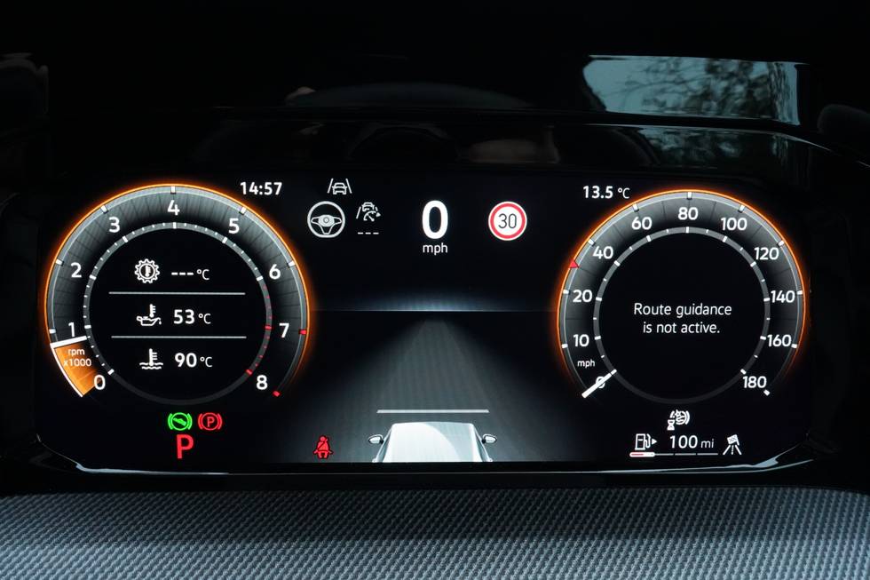 Speedo, rev counter, electronic odometer, trip, service interval display, exterior temperature and fuel gauge